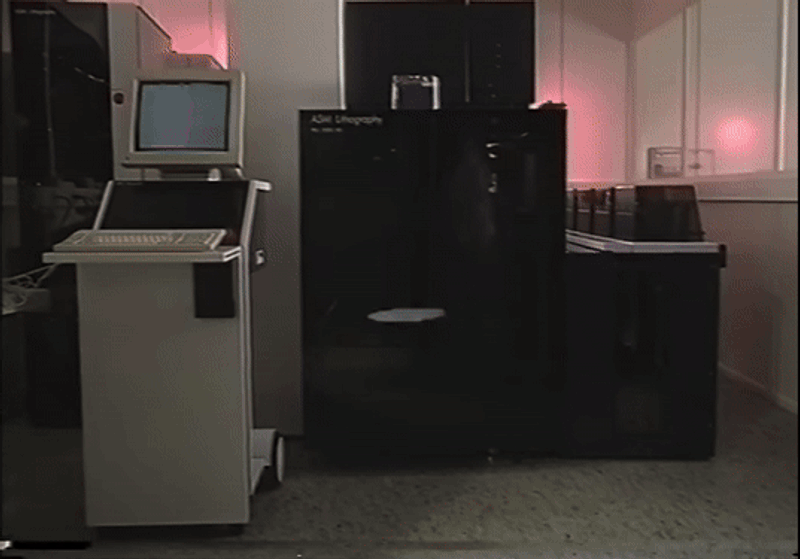 The technology that manufactures microchips is called photolithography. It is a combination of photography—because it uses the principles of dark room printing—and lithography—as it uses techniques of stone etching into silicon wafers. A form of printing invented by German playwright Alois Senefelder in 1798, early lithography used stone from the Solnhofen limestone plateau to cheaply print sheet music and precise maps. Lithography has a longer history in this part of south Netherlands. Some five kilometers from Velthoven, in Valkenswaard, Peter-Louis Vrijdag inherited a lithographic printing plant for packaging materials from his grandfather. The collection of historical lithographic material that he built up over the course of his life serves as the foundation of the local lithography museum, founded in 2011. The latest addition to their collection is a PAS2500/10, a very early model of an ASML (then ASMI) photolithography machine from 1986.